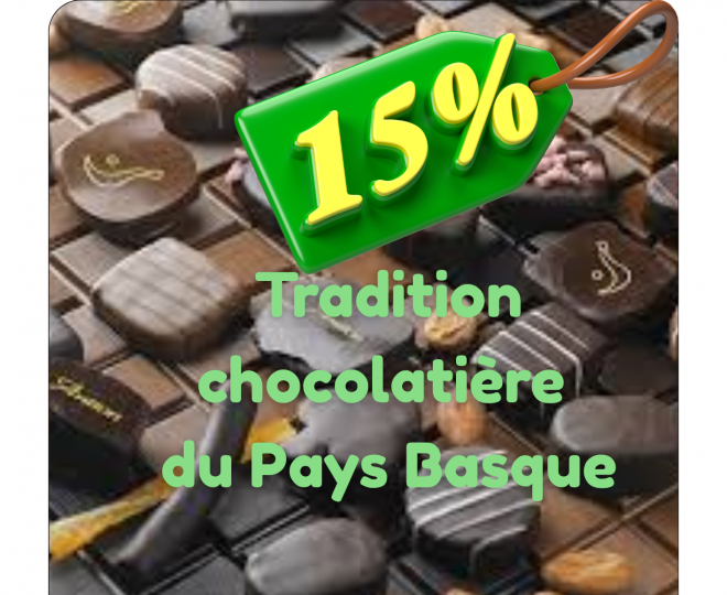 Découvrez la Tradition chocolatière du Pays Basque en cliquant sur le bouton. Passez commande avec le code promo VPCSEBOUYGUES pour bénéficiez de la remise. Cette chocolaterie appartient à l'ordre des chocolatiers confiseurs de France.