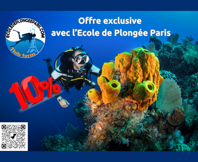 Offre exclusive avec l'Ecole de Plongée Paris ! Bénéficiez de 10% sur toutes les Activités de Plongée et d'Apnée sous-marine.